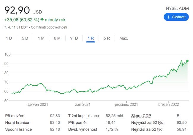 ADM obtuvo un rendimiento del flujo de caja libre del 14,2%. La empresa generó casi 6.600 millones de dólares de flujo de caja operativo en 2021. Su flujo de caja libre fue de aproximadamente 5.400 millones de dólares, según FactSet. La empresa gastó 834 millones de dólares en dividendos el año pasado, un 3% más que los 809 millones que pagó en 2020. El rendimiento de la acción se situó recientemente en el 1,8%.