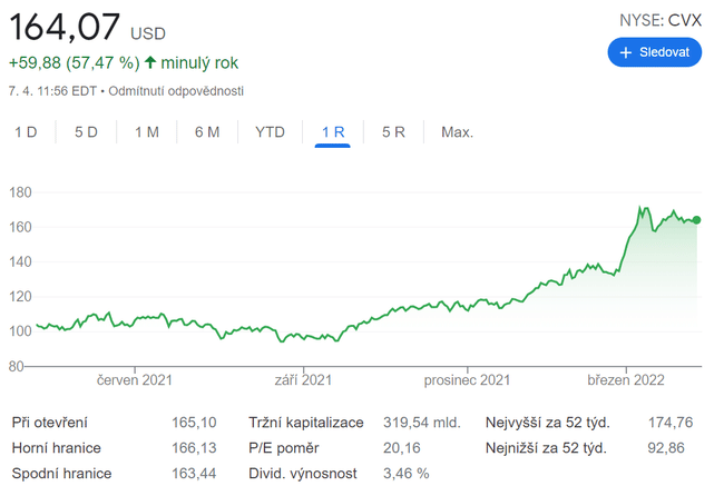 El consejero delegado, Michael Wirth, dijo a los analistas a principios de este año que el dinero en efectivo ayudó a la empresa a abordar cuatro prioridades financieras en 2021: aumentar el dividendo, continuar con el gasto de capital, "el reembolso significativo de la deuda" y la recompra de acciones por decimocuarta vez en los últimos 18 años. La acción rinde aproximadamente un 3,5%.