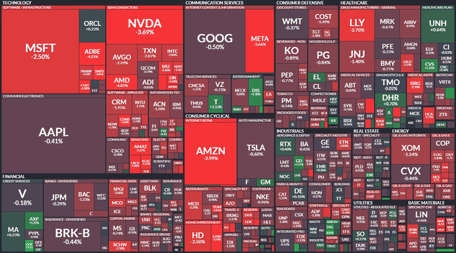 Las acciones estadounidenses se debilitaron notablemente el viernes, con los fabricantes de chips y las grandes empresas tecnológicas detrás de su descenso.