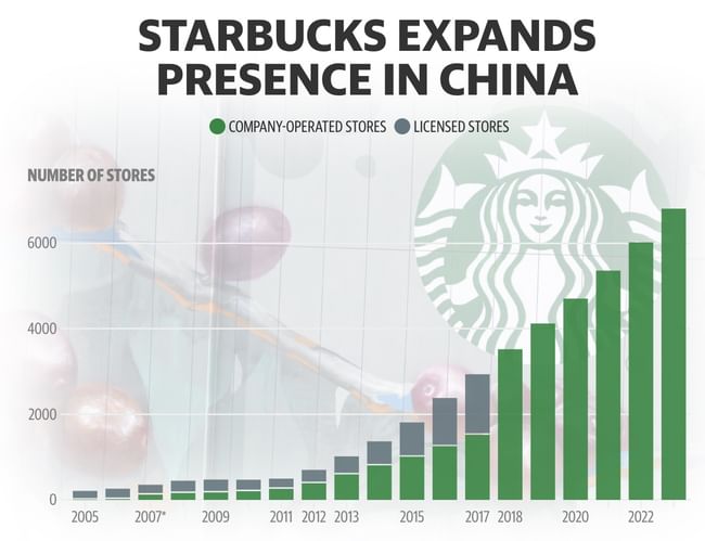 A finales del último trimestre, las tiendas de EE.UU. (16.352 establecimientos) y China (6.806 establecimientos) representaban el 61% de la cartera global de la empresa.