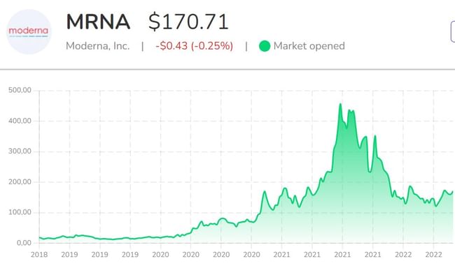 Esta oportunidad ya se ha presentado antes y hace muy poco tiempo. Todos recordarán cuando estalló Covid y todo empezó a restringirse... Pues bien, fue aquí donde los que estaban al tanto de la situación y reflexionaban sobre ella empezaron a investigar a las empresas que participaban en la producción de la vacuna. Probablemente las más famosas en nuestro país fueron y son Pfeizer $PFE y Moderna $MRNA.