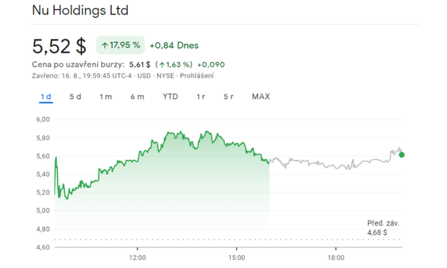 - Tras el informe de resultados, un analista de Wolfe Research elevó su precio objetivo para Nu Holdings a 6,50 dólares desde los 5 dólares por acción.