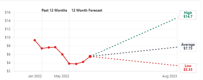 He repasado múltiples previsiones y, de media, se espera que $NU alcance un precio de unos 7-8 dólares por acción. Los analistas más alcistas ven entonces el precio hasta los 14-16 dólares por acción (por cierto, se puede ver en el gráfico).
