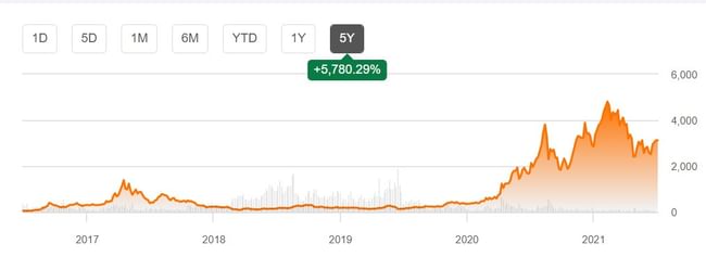 Explotó en 2021, comenzando el año a un precio de aproximadamente 775 dólares y terminando el año a aproximadamente 3.700 dólares.