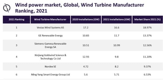 La empresa es actualmente líder en su campo, lo que le proporciona una clara ventaja competitiva, como sigue demostrando, ya que recientemente ha invertido importantes sumas de dinero en la investigación de nuevos tipos de aerogeneradores. Estas inversiones pueden ayudar a la empresa a mantener su ventaja competitiva en el futuro. En 2021, la empresa tenía aproximadamente un 19% de cuota de mercado, la más alta de todas las que operan en este segmento.
